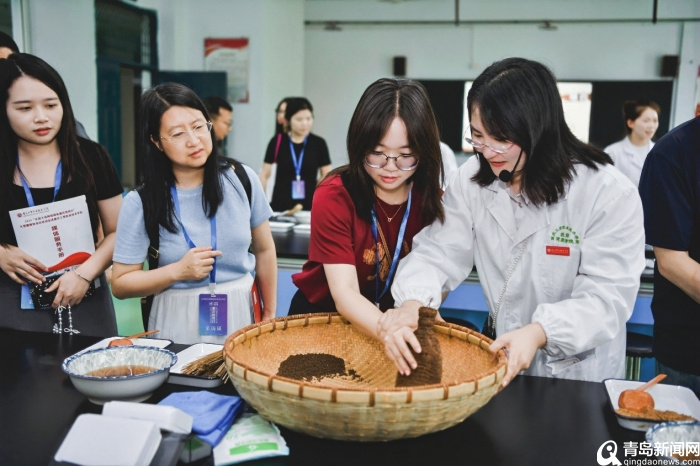 记者团也跃跃欲试。重庆工贸职业技术学院健康学院副教授万刘静一边讲解一边教媒体记者制作药丸,将传统手艺传播出去。