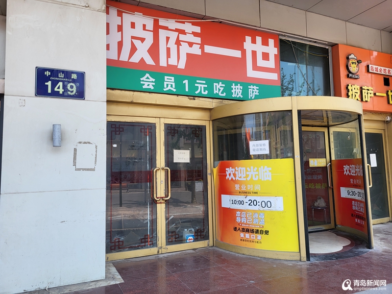 位于胶州路与中山路路口的丽达奥特莱斯国货店,如今旋转玻璃门上张贴着内部调整暂停营业的告示。这座建筑承载着几代青岛人的记忆,其前身为青岛国货公司。