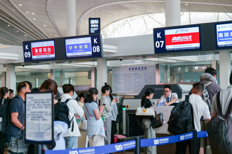 为保障旅客假期顺畅出行,青岛机场提前部署、科学调度,在客流密集时段动态增开值机柜台和安检通道,提升旅客通行效率;强化人员配备,增派志愿者为旅客提供现场问询、自助设备指导、交通换乘指引及特殊旅客帮扶服务,用心营造舒适、顺畅的出行环境。青岛机场往返西海岸方向的巴士服务也同步优化,全线新增9座新能源商务车,日均班次增至36班,运营时段延长至每日04:30至次日00:30,为旅客假日接驳提供更多选择。