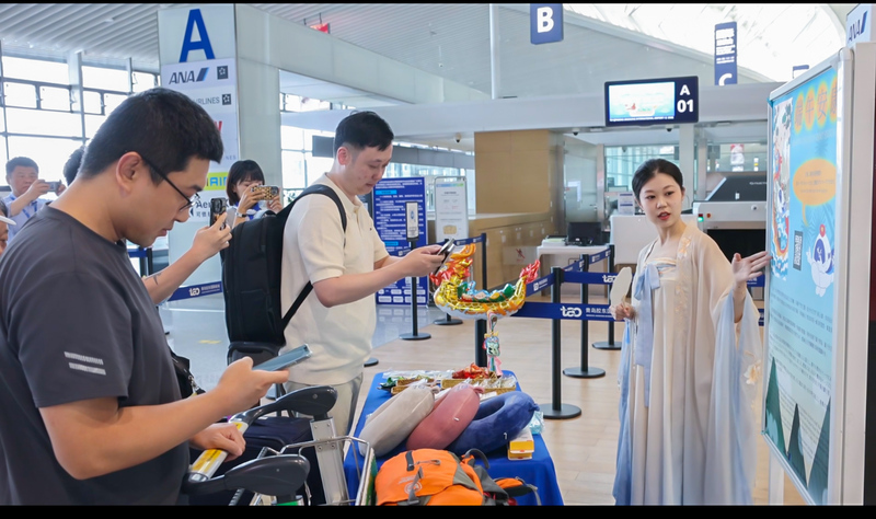 同时,为了向外籍旅客展示和传播中华传统文化,青岛机场携手全日空航空,在国际出发区域A岛值机区特别设置了“端午文化角”。值机员身穿汉服为中外旅客介绍端午习俗,赠送节日纪念品,让出境游旅客感受到机场真情服务和青岛城市热情。
