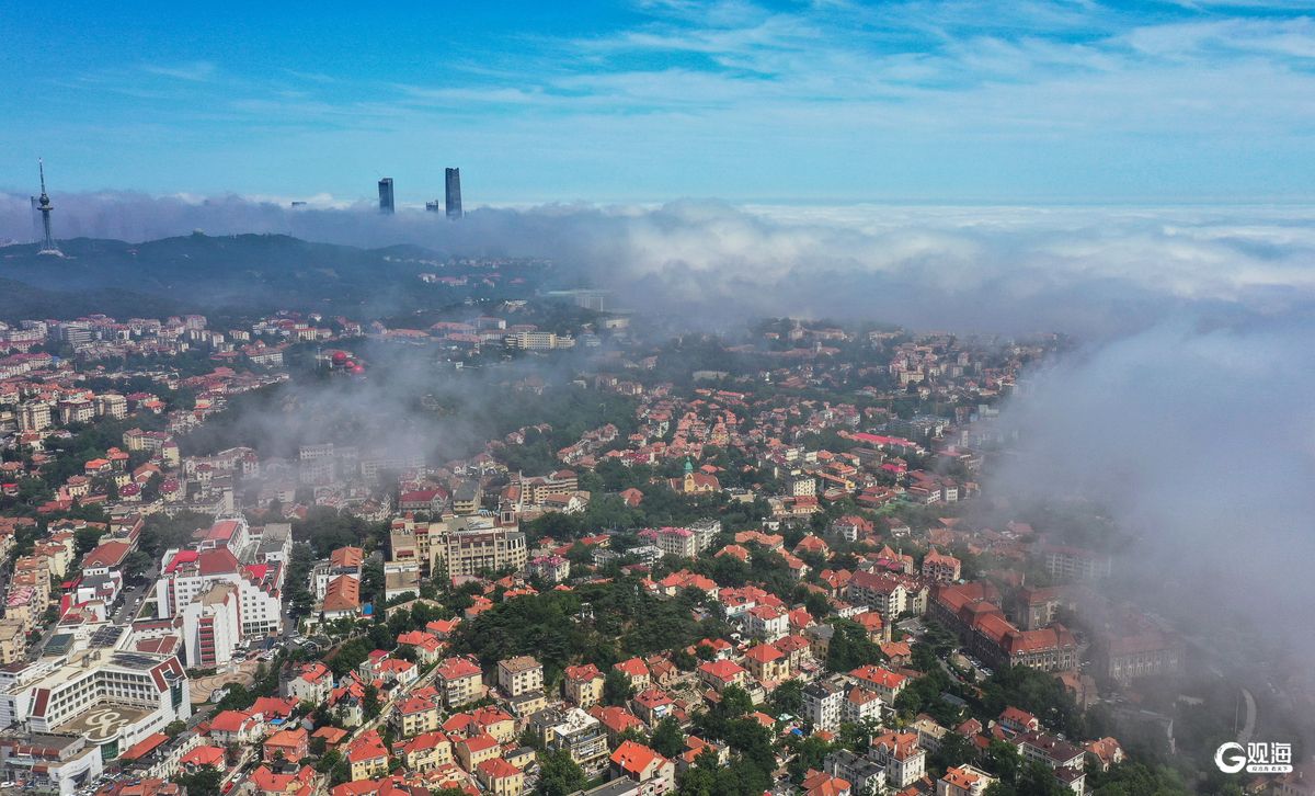 青岛日报社/观海新闻6月11日讯 今天,青岛老城区一带出现平流雾景观。城市上空,雾气朦胧,仿佛大自然开启了“氛围组”模式,将青岛装点得宛如一幅流动的画卷。据了解,每年春季至初夏是青岛出现平流雾的高发期。这一现象的形成,主要受到海洋气候、地形条件以及风向风力的共同影响。青岛老城区以海滨丘陵地形为主,这种独特的地形有利于暖湿气流的上升和聚集。当南风携带着暖湿的海洋空气吹向青岛时,气流在丘陵地形的迎风坡上升,与低温的海面或陆地相遇,水汽便凝结成雾,从而形成了这如梦似幻的平流雾景观。