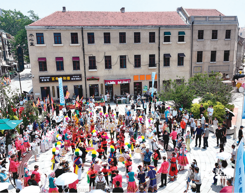 俄罗斯、斯里兰卡、韩国、泰国等国外演出团队在青岛老城区巡演。王雷 摄