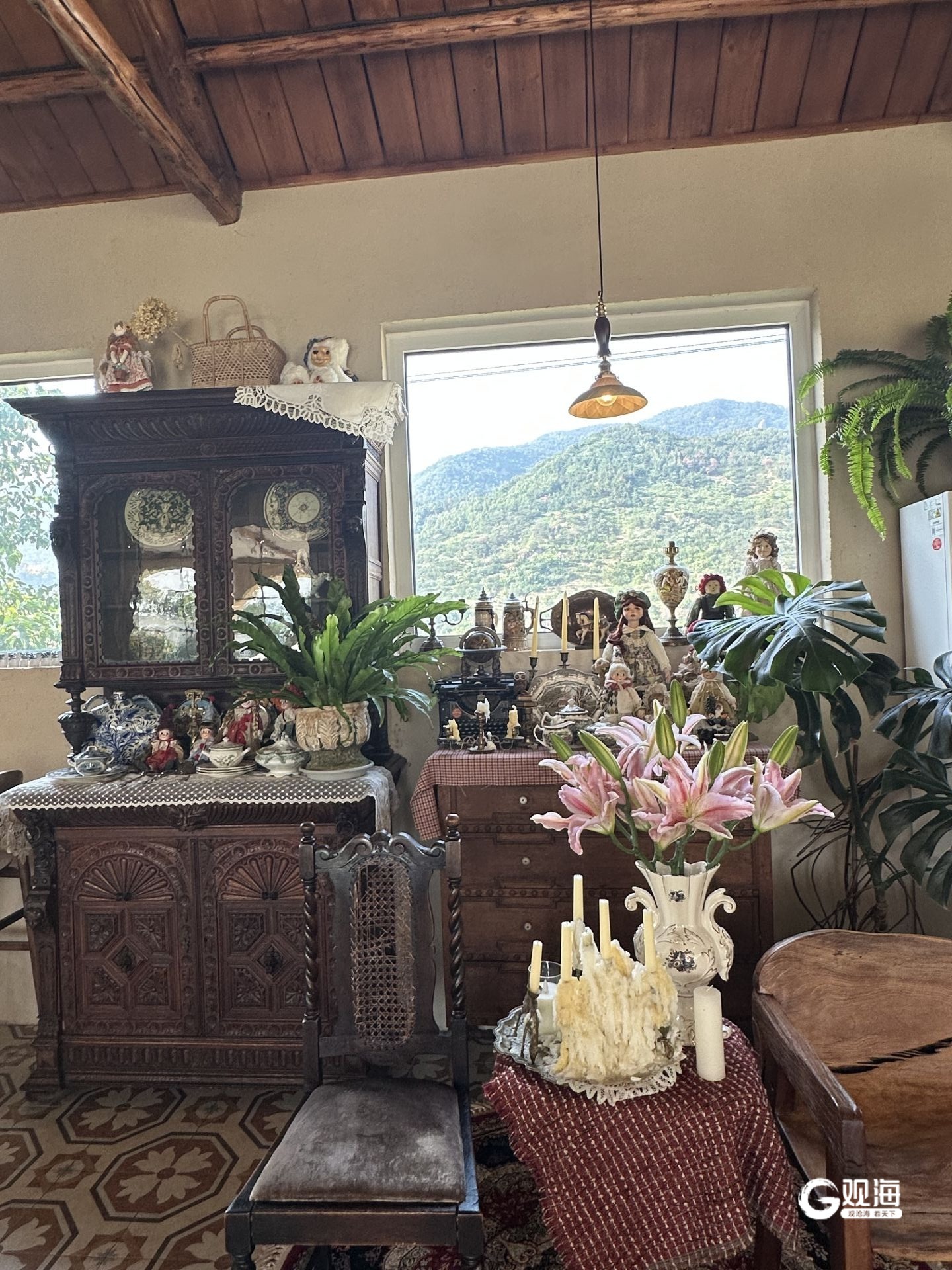 “进来之前完全想象不到里面是这样的景色。”这是大多数游客的第一反应,而这份惊喜源于主理人“细节控”般的执念。郑瑶瑶笑着说:“院子里种了很多花,就是希望拍照好看。”花园的设计注重细节,比如复古巴士周围种满了蔷薇和风车茉莉,在不同季节盛开的花卉搭配也让花园的景色常换常新。从高低错落的绿植搭配到色彩呼应的布景设计,甚至每扇窗户都被打造成精致的“取景框”,一窗一景,框住崂山的山水田园,也框住了都市人向往的诗意。