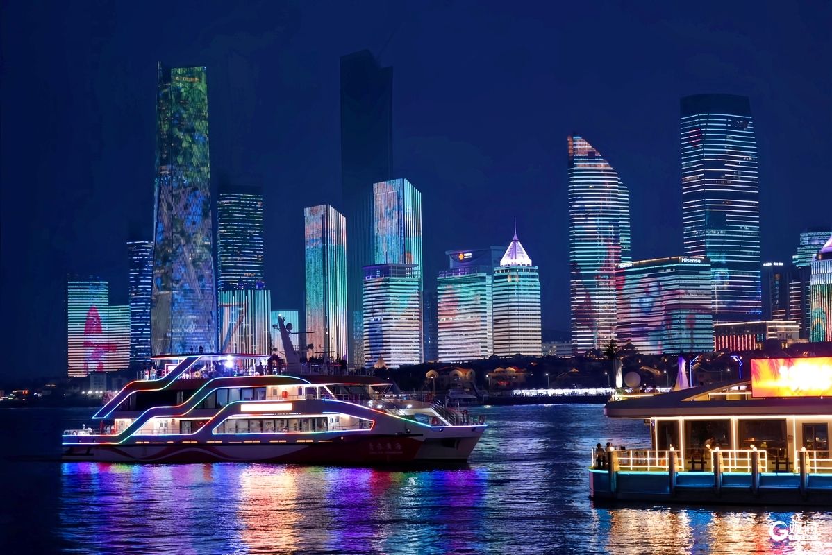 除了拍照打卡,游客们还热衷于乘坐游船,从海上欣赏青岛的夜景。一艘艘游船缓缓驶出码头,在浮光跃金的海面上前行。在游船上不仅能感受到海风的轻抚,还能将五四广场、青岛国际会议中心、情人坝等沿岸美景尽收眼底。