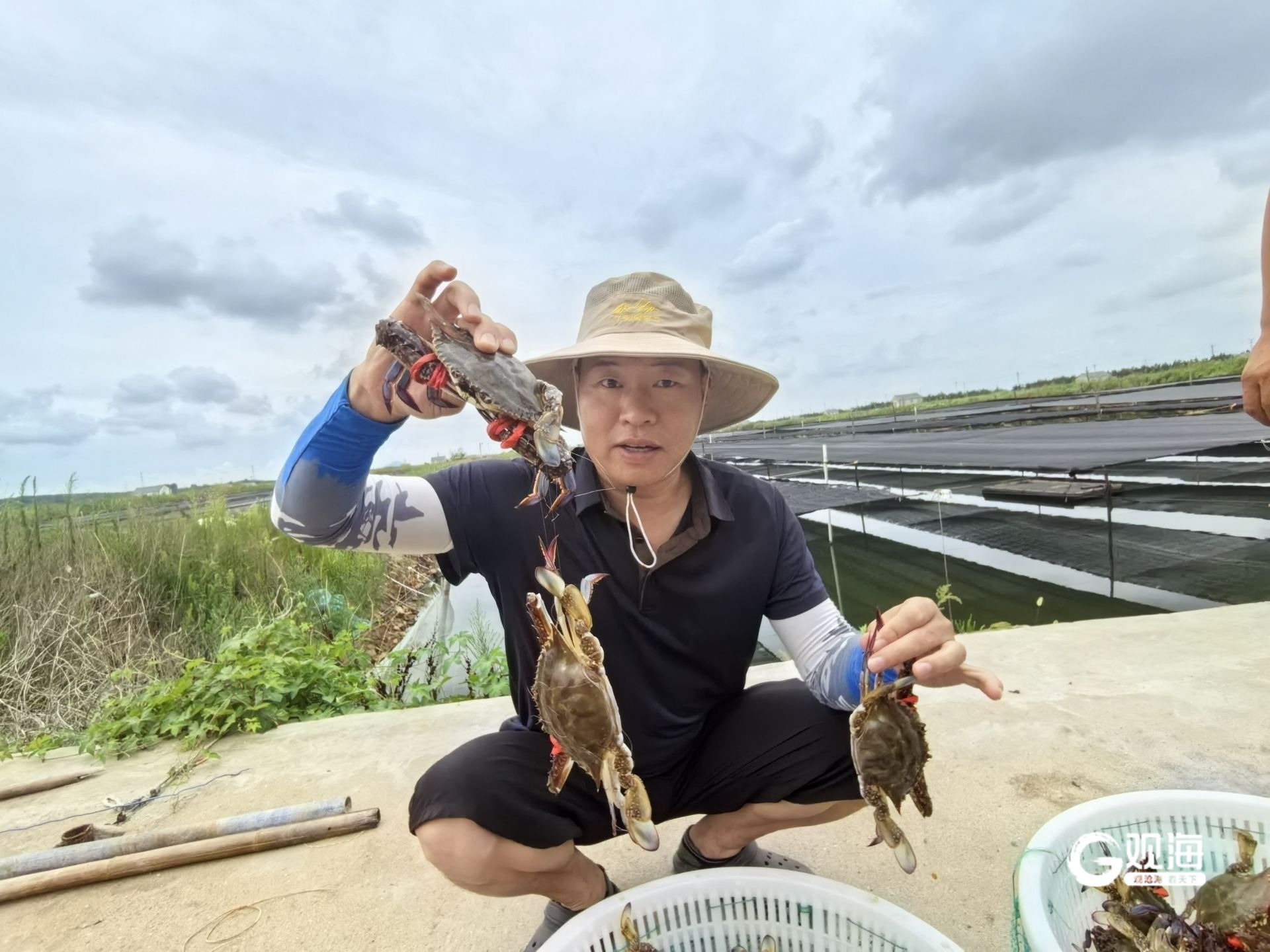 赵德上展示肥硕的本地养殖梭子蟹。