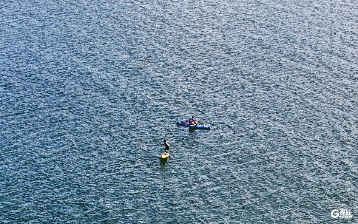 青岛日报社/观海新闻8月3日讯 当盛夏的阳光洒满唐岛湾的水面,周末的风便有了形状——是皮划艇划开碧波时,桨叶带起的银亮弧线;是摩托艇掠过水面,激起的白色浪花在蓝天下铺开长卷。有人把身影交给海浪,让皮划艇载着自己随波轻晃,看云影在水面碎成光斑;有人踩着摩托艇的轰鸣,与风竞速,任水花溅满脸庞,把笑声抛向远方。