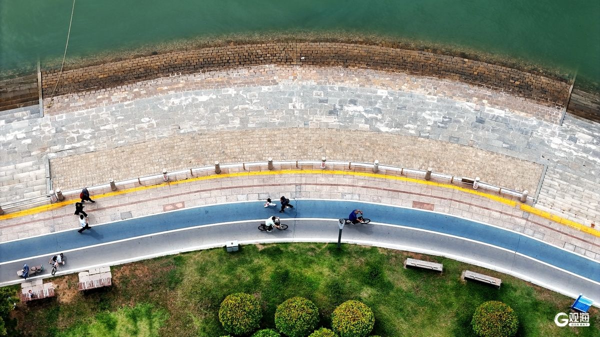 岸边的节奏是另一种模样。骑行道上,车轮碾过风的轨迹,两侧的绿意扑面而来,混着海风的咸湿;散步的人踩着树荫踱步,看远处的艇影与近处的树影交叠,任时间在惬意里慢慢流淌。唐岛湾的周末,一半是浪花里的心跳,一半是树荫下的惬意。在这里,盛夏的快乐从不设限——可以是乘风破浪的畅快,也能是岁月静好的安然。(青岛日报/观海新闻记者 梁超 文/图)