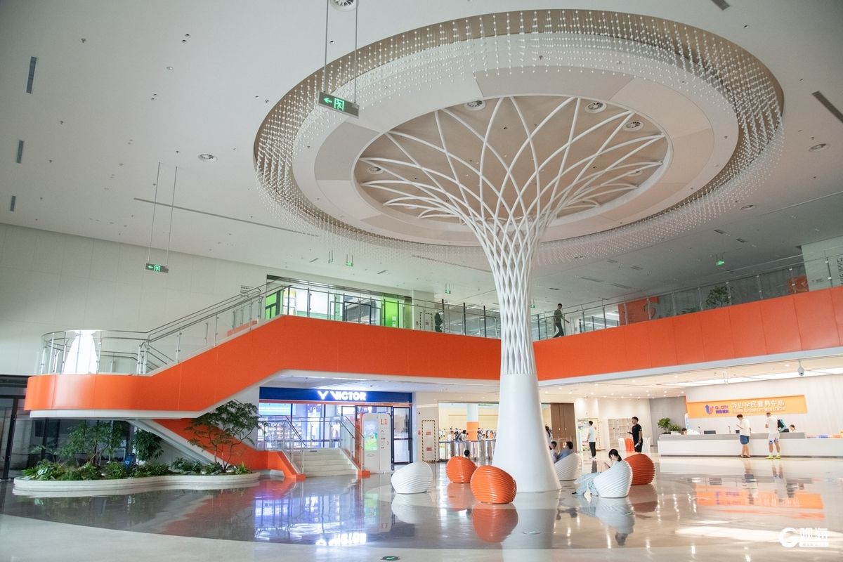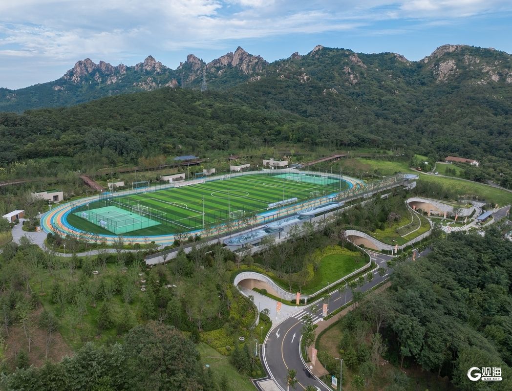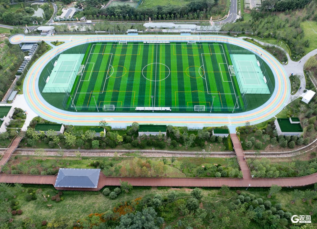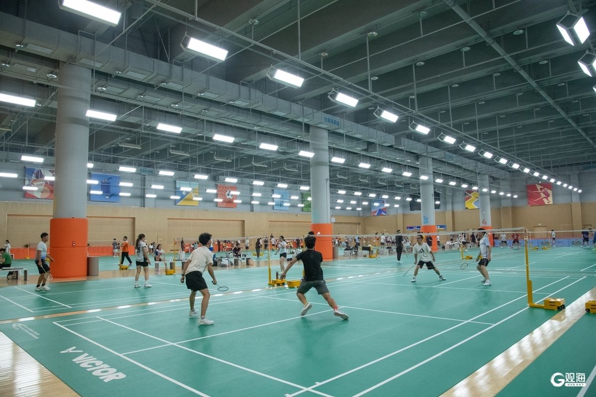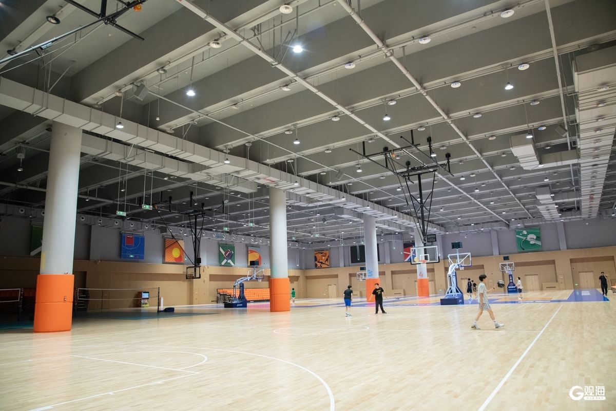 场馆以“消隐、赋能”为设计理念,巧妙地隐匿于浮山的环抱之中,是青岛最大的覆绿健身中心。据介绍,场馆内设有羽毛球馆、网球学练馆、乒乓球馆、篮球馆、健身私教馆、击剑馆、运动康复中心等多元业态。其中,羽毛球馆场地以12米挑高营造出敞亮开阔的空间,40片专业场地达到国际二类赛事标准;篮球场净高超9米,设有4片标准全篮场,地面铺设CBA赛事级实木运动地板。