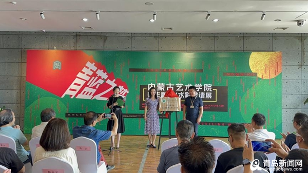 青岛市公共空间艺术促进中心主任王建红与内蒙古艺术学院党委副书记赵晓强共同为青岛市雕塑馆建立大学生校外实践写生基地授牌。