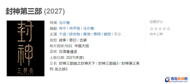 近日,影视圈两大备受瞩目的消息传来:《封神3》有了新进展,预计将于2027年上映;《流浪地球3》的剧本也已完稿,且将分上下部呈现,上部计划在2027年大年初一上映。这两部大片均在青岛影视基地摄制制作,如按预期2027年同年上映,青岛影视大片代表作将再度迎来“高光时刻”。