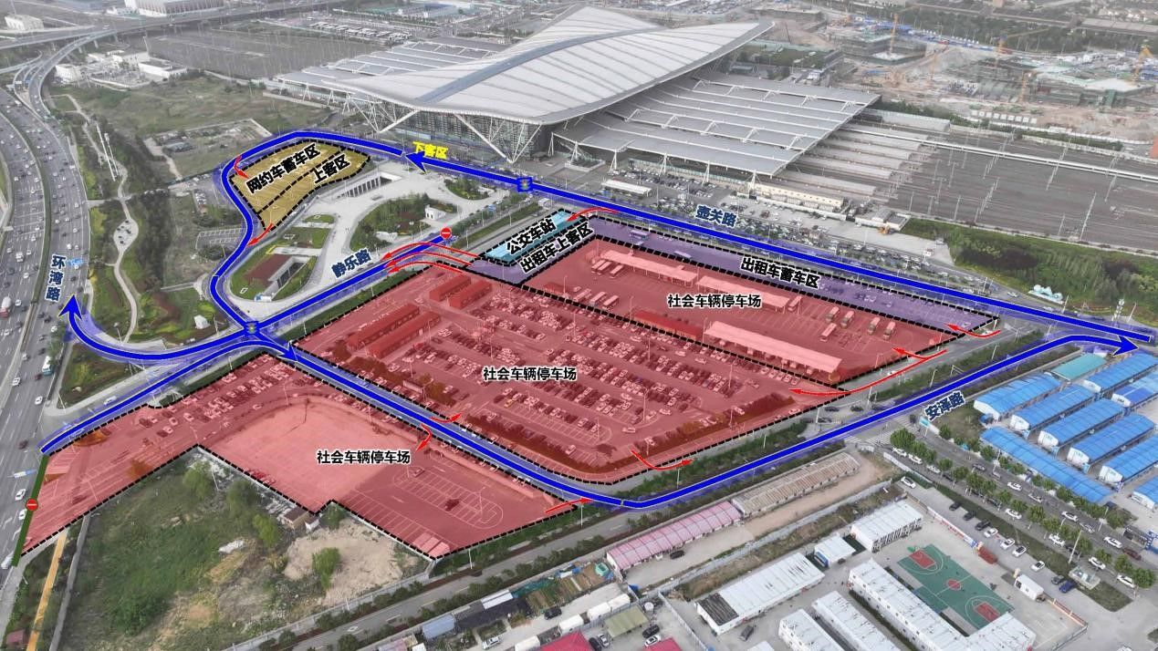 火车北站西广场站前落客区由四车道双排扩容为六车道三排,站前落客能力提升50%,满足所有车辆站前落客需求。设置网约车专用停车场,规范网约车运营秩序。优化公交、出租车和社会车辆停车场布局,实现各类交通方式的有序、高效换乘。