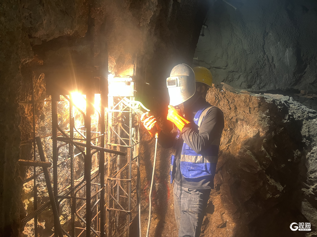 晚上10点,地下作业面的温度比地面高出2-3℃,空气中弥漫着混凝土和金属的气味。测量员反复核对全站仪数据,确保钢拱架的架设精度控制在要求范围内。电焊工手持焊枪,让蓝色的火花在钢架接缝处跳动。焊枪的高温把工作服烤得发烫,但他已经习惯了这种炙热,就像习惯了节日里照常上班的作息。