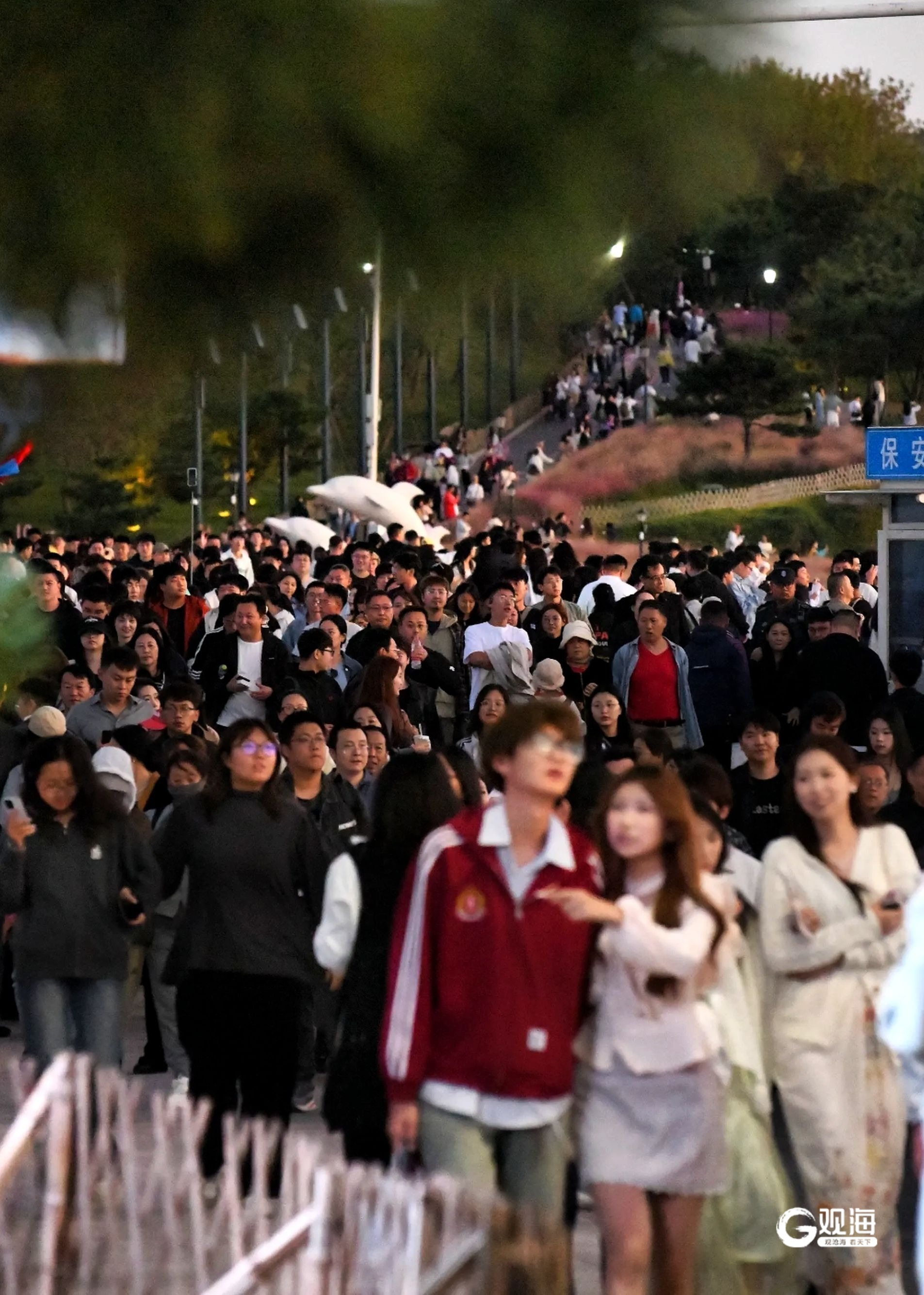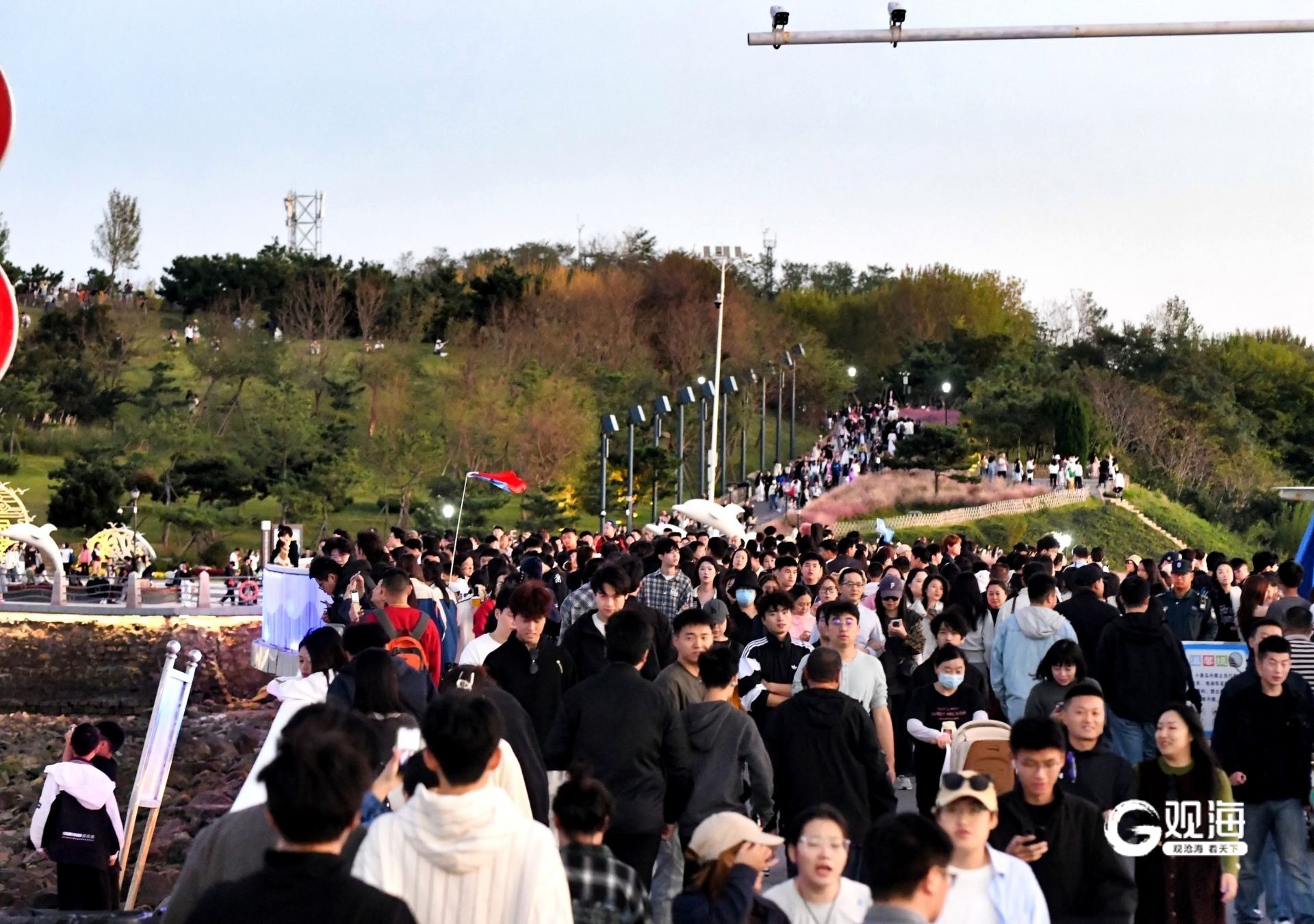 青岛日报社/观海新闻讯 国庆长假虽已结束,但青岛的旅游热度并未随之降温。14日傍晚,小麦岛公园依旧游人如织,市民与游客纷纷前来赴一场秋日夕阳的约会,展现出这座海滨城市持久的吸引力。