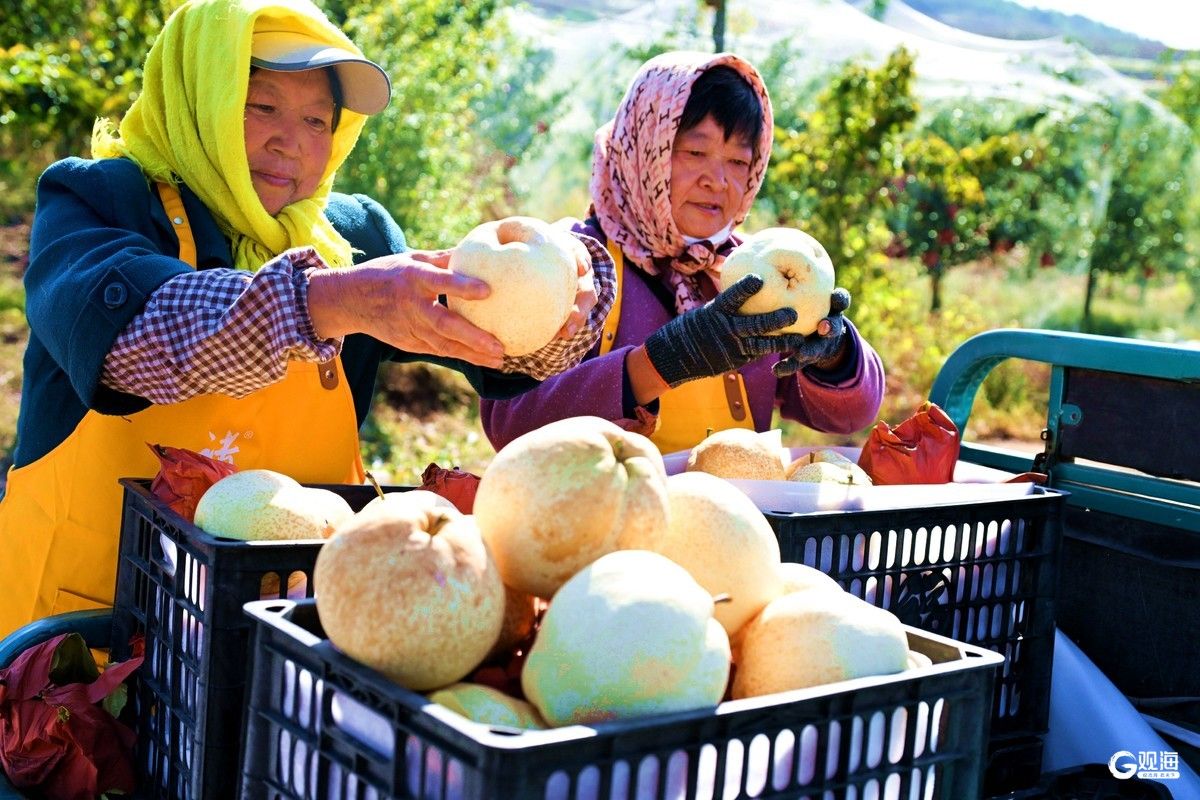 青岛日报社/观海新闻10月23日讯 金秋时节,即墨区金口镇千亩“诸葛酥梨”相继成熟。果园里,果农忙着采摘、分拣、搬运、包装、装车,一派丰收的景象。