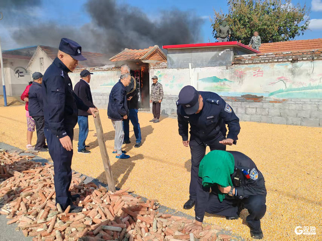 2025年10月21日10时7分许,莱西市公安局龙水路派出所社区民警王太雷和辅警张吉信、王磊、李荣栋在辖区某村走访时,突然发现村中不远处冒出滚滚浓烟。四人见状立即奔赴现场查看情况,只见一名村民家中起火,浓烟从屋中不断涌出。