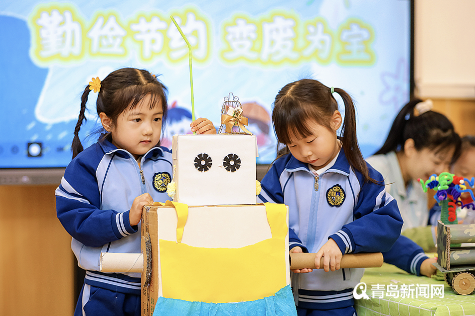 世界勤俭日 李沧小朋友巧用旧物制作环保时装、简易玩具