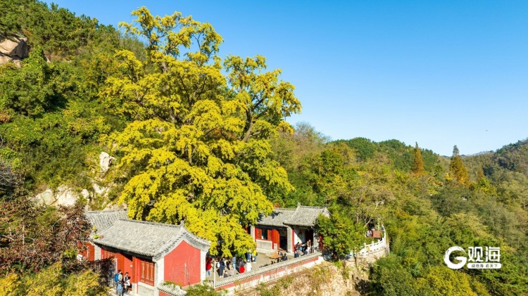 公园内的千年古银杏树呈现金黄璀璨的景象,搭配竹林形成独特视觉效果。