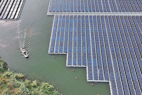 中石化青岛炼化全海水环境漂浮式光伏项目。刘强 摄
