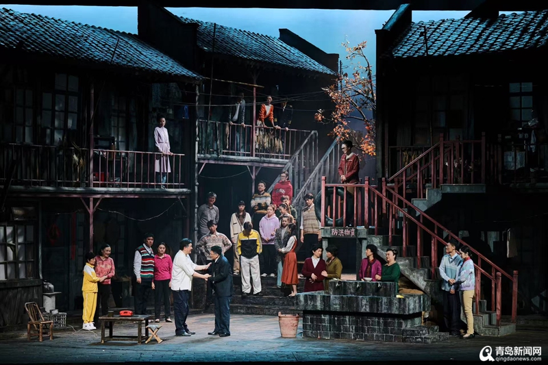 《烟火人间》的成功,始于对青岛里院文化的深度挖掘。这座承载着百年历史的建筑,是青岛独有的城市符号,更是无数普通人的生活舞台。话剧以里院“向阳院”为背景,将镜头对准上世纪八十年代的市井生活:屋角堆叠的蜂窝煤、屋檐悬挂的腊肉、邻里围坐唠家常的温馨场景,一开场便将观众拉回那个烟火气十足的年代。