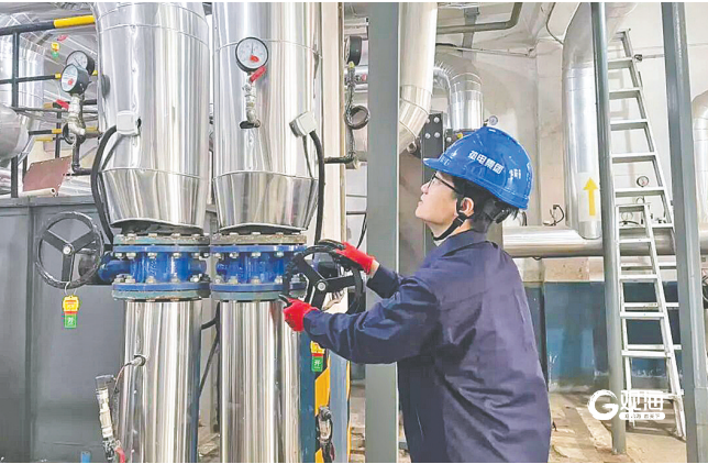 青岛能源集团供热管家正在调试管网设施。青岛能源集团供图