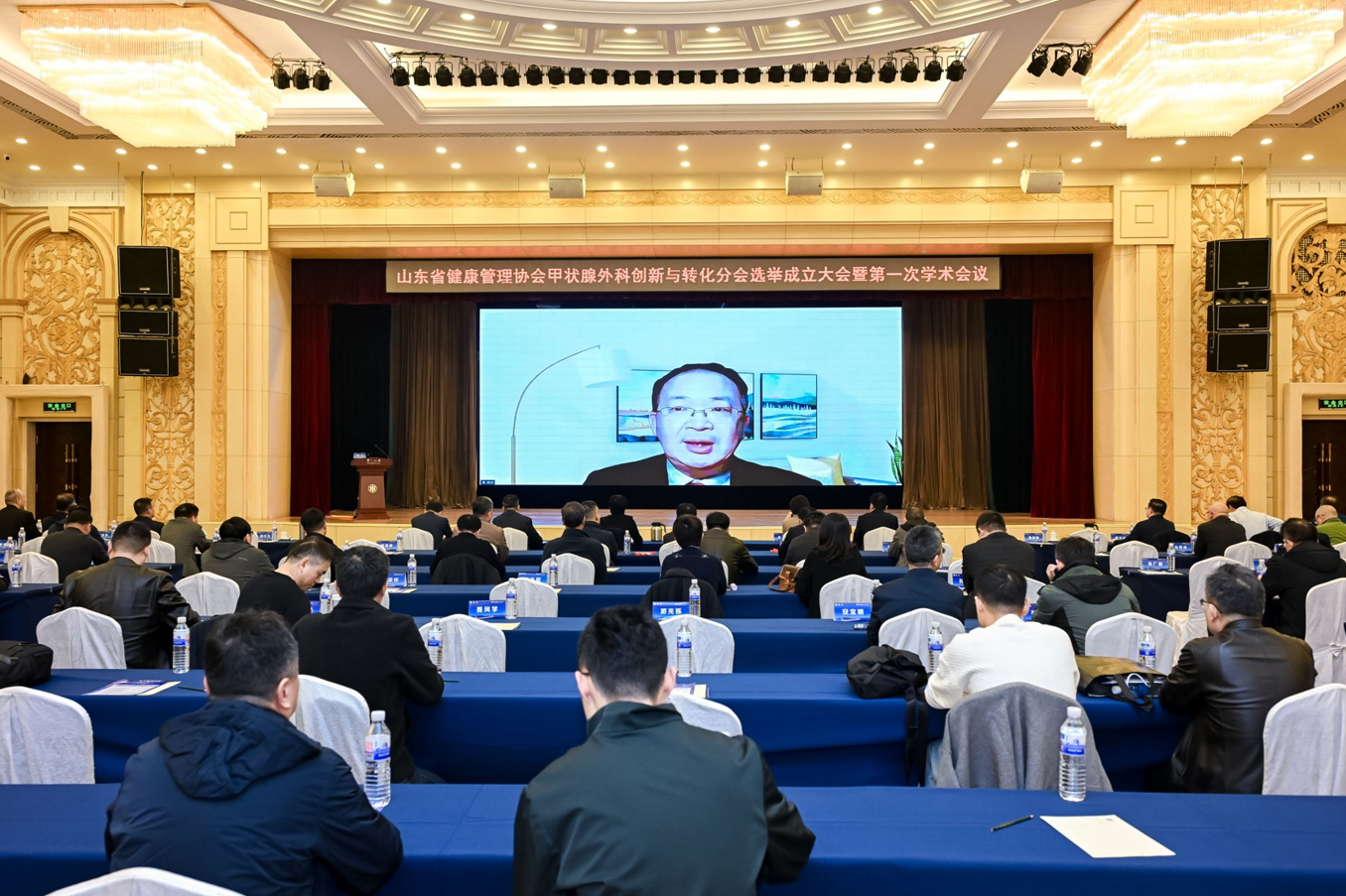 会上,山东省健康管理协会甲状腺外科创新与转化分会正式成立,经现场选举,孙大为主任当选为首届主任委员。此次甲状腺创新与转化学术会议旨在搭建高水平学术交流平台,汇聚甲状腺领域专家智慧,共同探讨疾病诊疗创新技术路径与转化应用方向,擘画甲状腺学科未来创新发展蓝图。会议设置专题学术报告与病例讨论环节,中国医师协会甲状腺外科专业委员会主任委员、中国研究型医院协会甲状腺外科专业委员会主任委员、解放军总医院田文教授,中国医师协会外科医师分会甲状腺外科医师委员会副主任委员、吉林大学中日联谊医院孙辉教授,天津市肿瘤医院王旭东教授,郑州大学第一附属医院殷德涛教授,浙江大学医学院附属第二医院李志宇教授,南京鼓楼医院桑剑锋教授,联勤保障部队第九六〇医院贺青卿教授,山东省肿瘤医院陈万军教授,山东大学齐鲁医院李鲁传教授,山东省千佛山医院王玉龙教授等国内知名专家,围绕“甲状腺癌诊疗全程化管理”、“甲状腺疾病诊断治疗的创新与转化”等前沿热点课题进行交流,全方位分享经验,共同破解诊治难题。山东省健康管理协会甲状腺外科创新与转化分会的成立,标志着山东省甲状腺疾病医疗事业的发展进入了新阶段,青大附院将充分发挥主委单位作用,为全省甲状腺领域专家搭建开放、包容、合作、共赢的全新平台,进一步激发甲状腺领域的创新活力,提升甲状腺疾病诊疗与转化研究的专业水平,为保障人民健康、推动学科高质量发展注入新的动力。