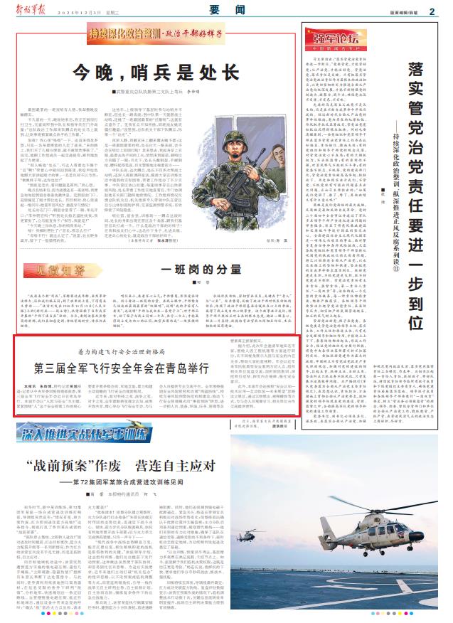 近年来,面对科技之变、战争之变、对手之变,全军着眼转变理念认知、成果开放共享,精心举办飞行安全年会,为与会人员提供专业交流平台。全军围绕强固安全风险管控和治理“两道防线”,持续完善风险预警防范机制建设,推动飞行安全管理模式向“事前预防”转型,进一步把人员、装备、环境、任务、管理等各要素真正抓紧抓实。