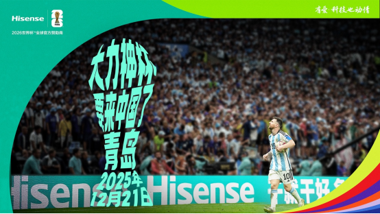 马上进入世界杯年,大力神杯的日程表里已经塞满了各种行程,其中就包括即将开启又一次中国之行。据悉,2026年世界杯官方赞助商海信,12月21日将把“大力神杯”带到中国并在青岛面向公众进行免费展出,海信世界杯全球官方指定产品“首发阵容”也将迎来正式亮相,为大家带来更好的观赛体验。