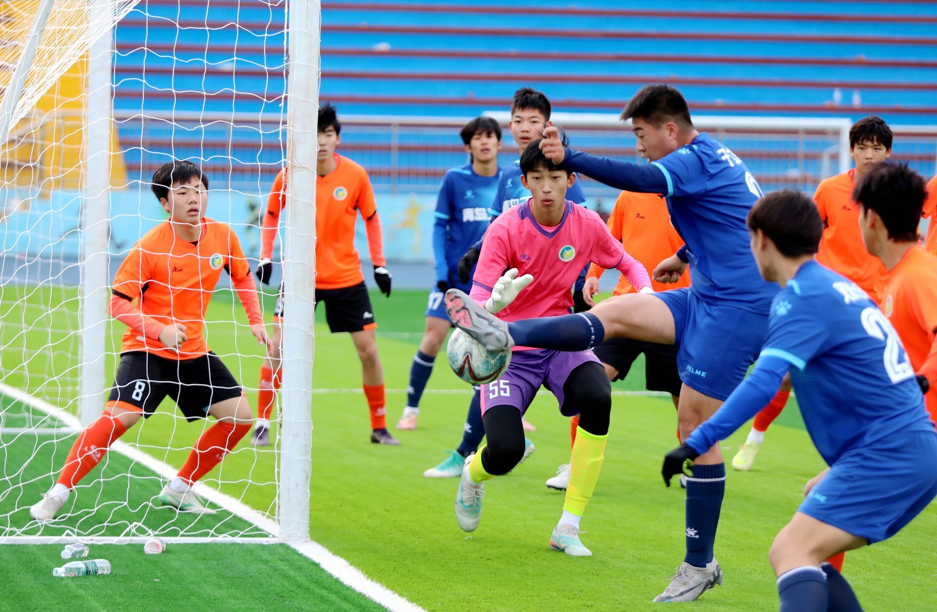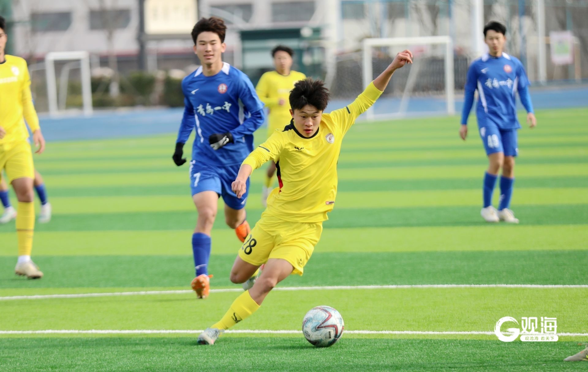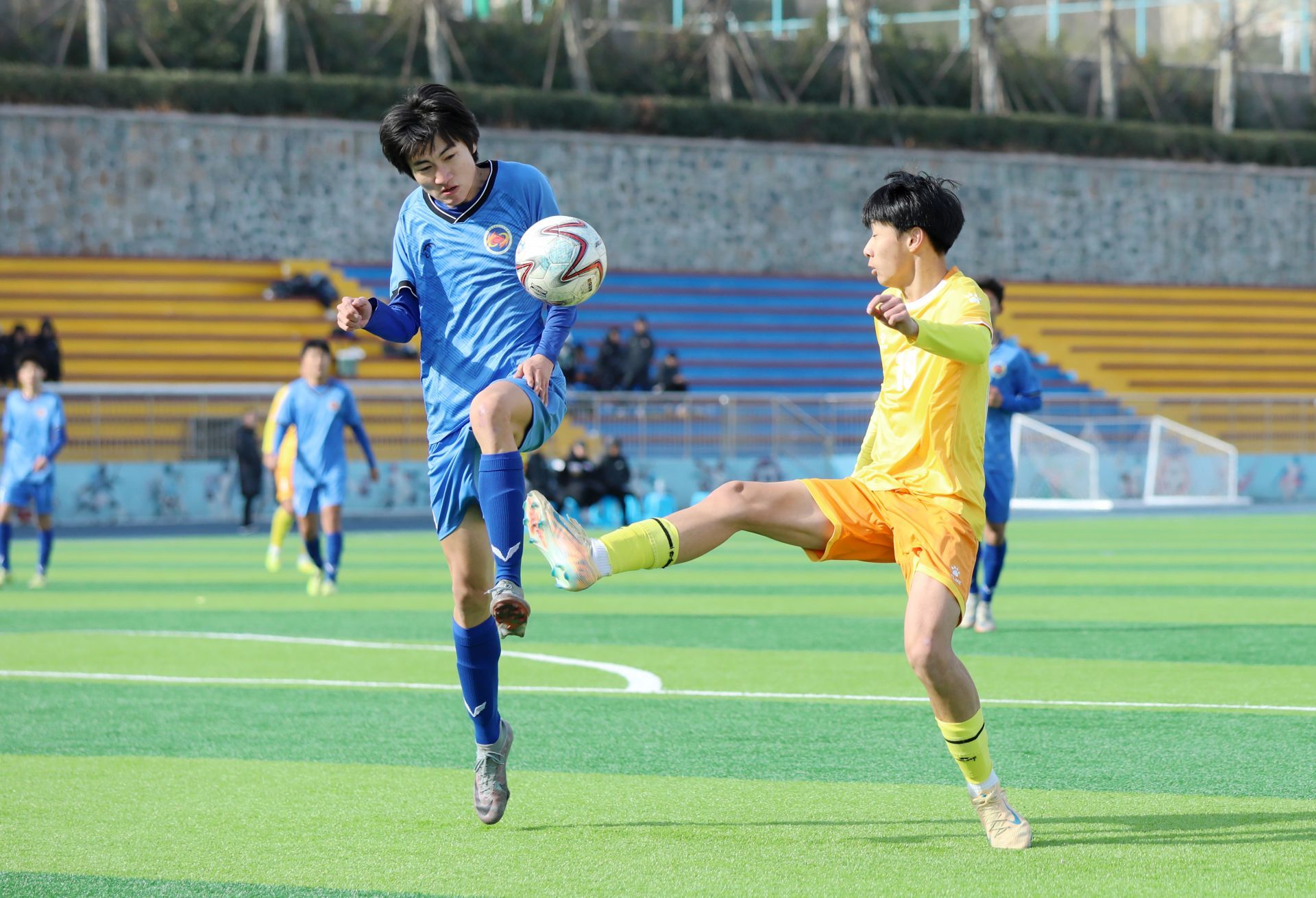 青岛日报社/观海新闻12月21日讯 日前,青岛市“市长杯”高中男子甲组的四场比赛在青岛第九中学展开激烈角逐。青岛第一中学、青岛第二中学、青岛第九中学(A、B队)、青岛第六十六中学、城阳区第一实验高级中学、城阳区第二实验高级中学及莱西市实验学校8支队伍绿茵场上一决高下。小将们斗志昂扬,传球、抢断、射门一气呵成。此次赛事不仅是球技的较量,更是对团队协作与永不言弃精神的锤炼,为青岛校园足球发展注入全新活力。(青岛日报/观海新闻记者 韩星文/图)