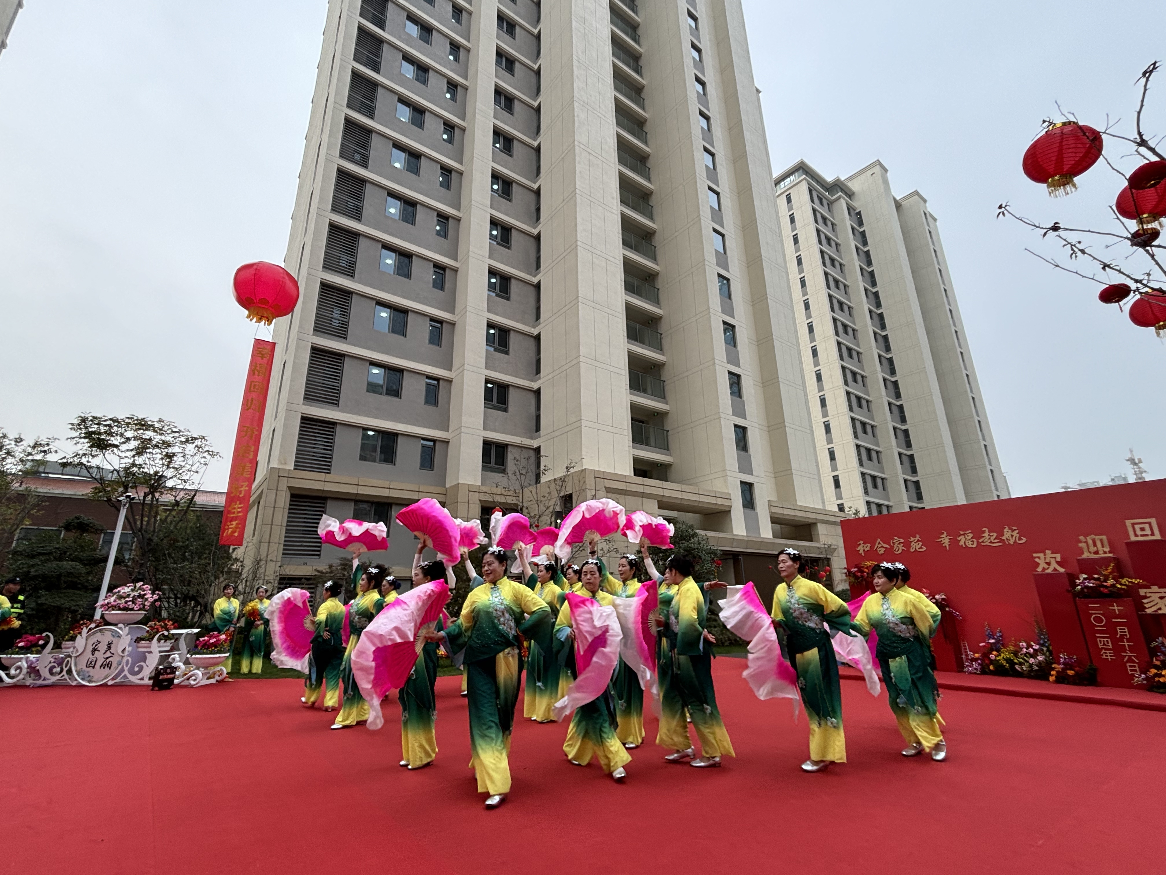 居民们在刚回迁的新小区载歌载舞。衣涛摄 (资料图)