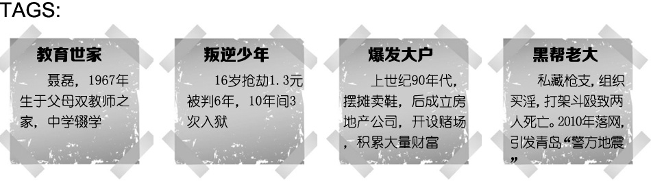 聂磊:从教育世家到黑老大之路聂磊从一个叛逆的少年,一个不安分的鞋贩,一个成功的房地产商,最终成为黑帮老大。若说有神奇之处,只能说这条路,处处打着投机、暴发、失控的时代印迹...[详情] |