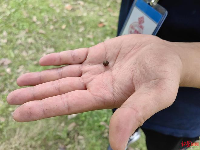 社区工作人员王先生拍照取证后,带走一颗弹珠存证。