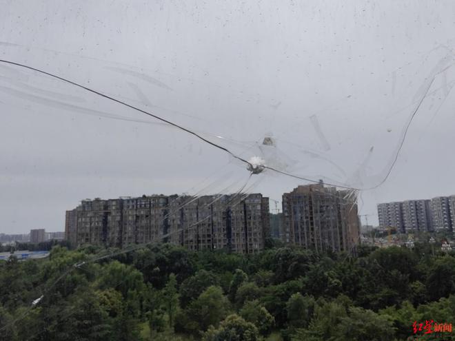 6月13日9时许,家住成都双流区新碧园小区的刘先生,在阳台上做了一阵伸展运动后,转身去上卫生间。突然,“砰”的一声巨响,刘先生转过头一看,阳台上的一块玻璃窗出现大量裂痕,状如蜘蛛网,中心位置有一个小洞。