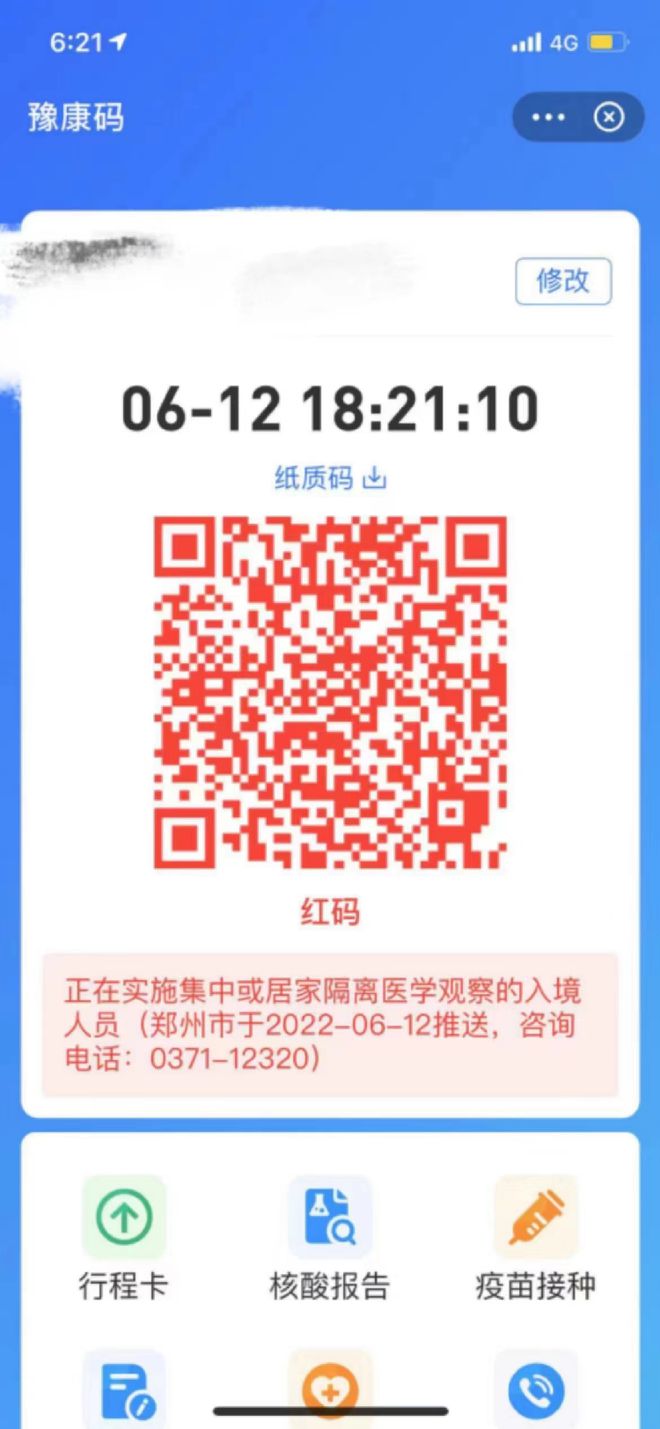 记者统计发现,大量用户豫康码被赋红码原因显示为“入境人员”。浙江储户张琪(化名)告诉海报新闻记者,6月12日她乘火车从浙江达到郑州东站,出发前她已经通过支付宝报备了个人行程信息,并持有48小时内核酸检测阴性证明。