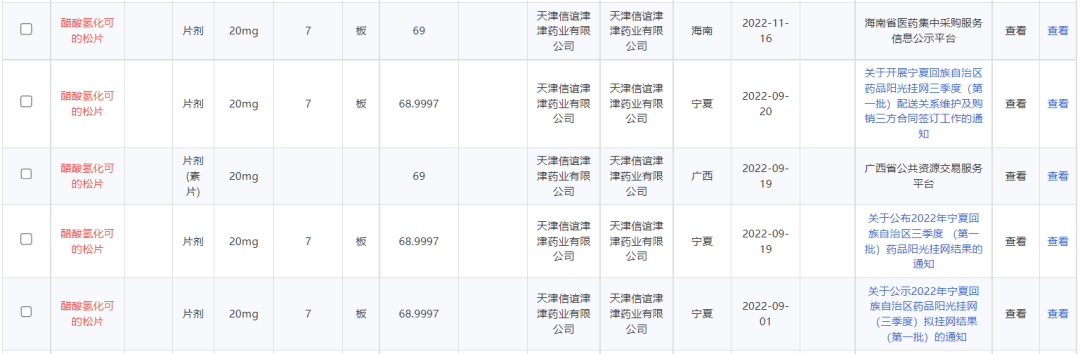 国家药监局官网显示,目前该药仅有天津信谊津津药业有限公司一家药厂在生产。