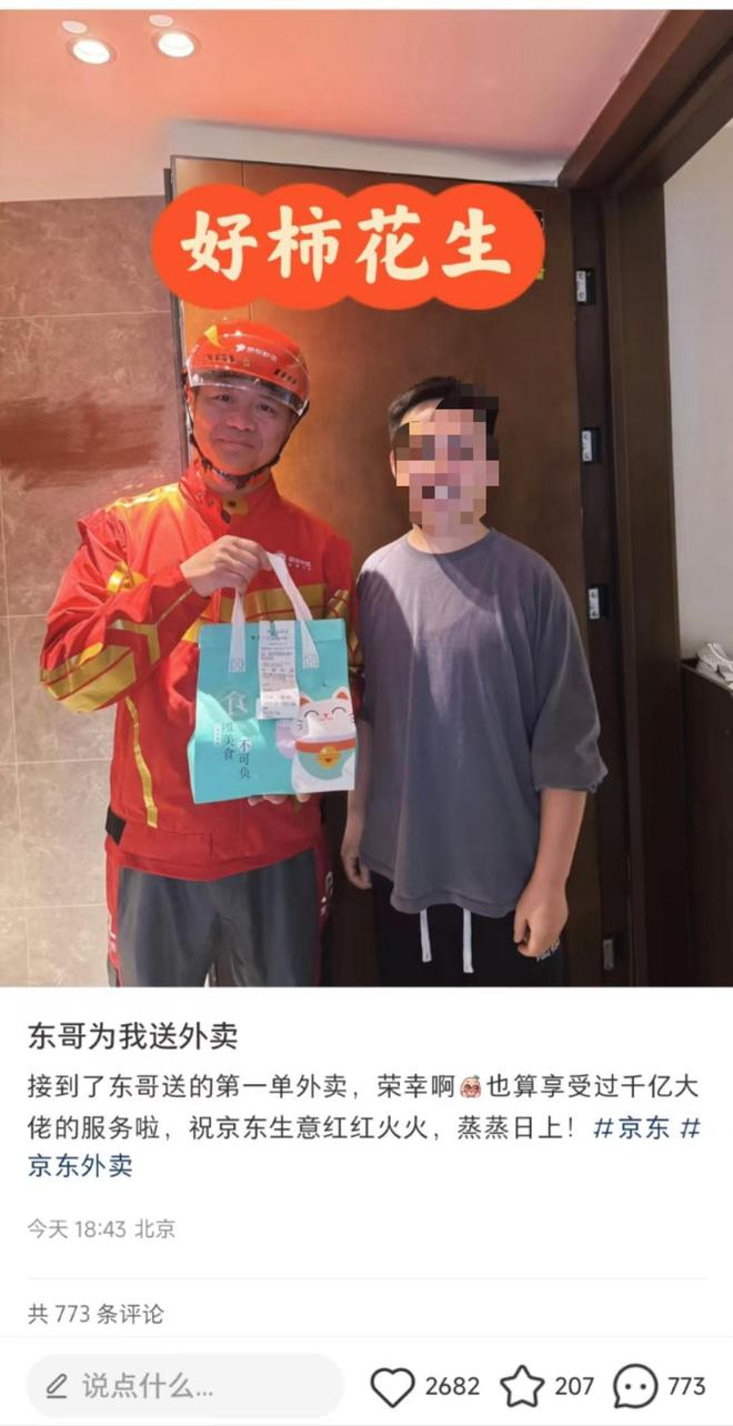 4月21日,有网友在小红书平台分享了一张刘强东亲自送外卖的照片,此举引发不少网友热议。