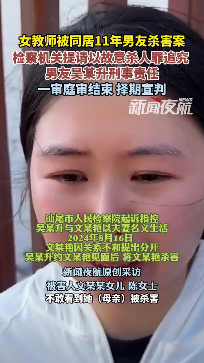 2025年4月21日15时30分,广东省汕尾市中级人民法院一审公开审理此案。文某艳亲属介绍,此次庭审采用两地视频连线模式,被告人吴某升在陆丰市看守所接受审理,文某艳胞弟则在陆丰市人民法院出席庭审。因文某艳子女已在派出所作证并录取口供,未能旁听庭审。