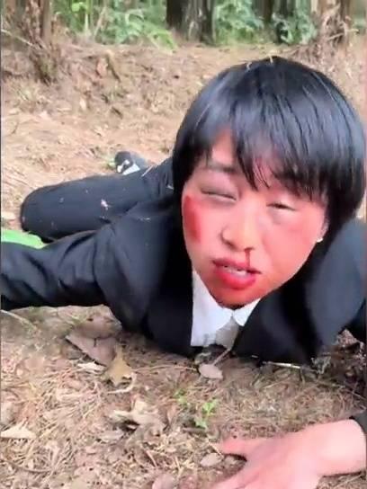 被踢得“鼻青脸肿”的蒋婷婷 图/视频截图