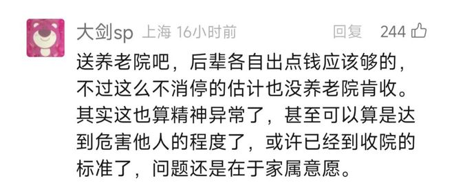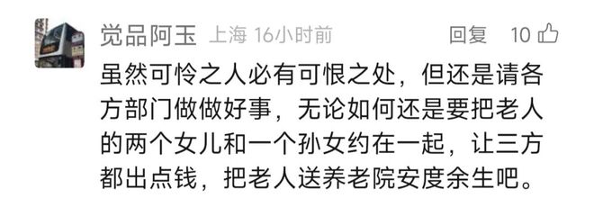 有网友称老人毕竟年龄大了,希望各方家属好好协商,给老人一个安度晚年的去除