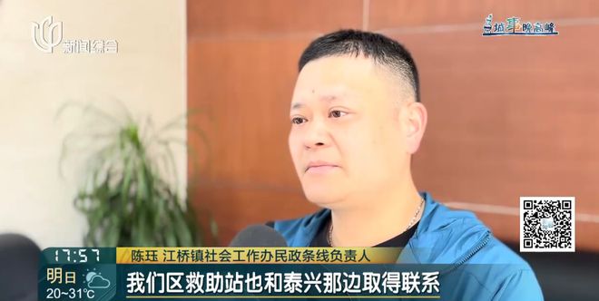 陈珏江桥镇社会工作办民政条线负责人:我们和区里民政下面的救助站联系好了,他们会和泰兴这边救助站沟通联系,直接把老人送到泰兴的救助站,泰兴的救助站联系村委会或者联系女儿,接回去。
