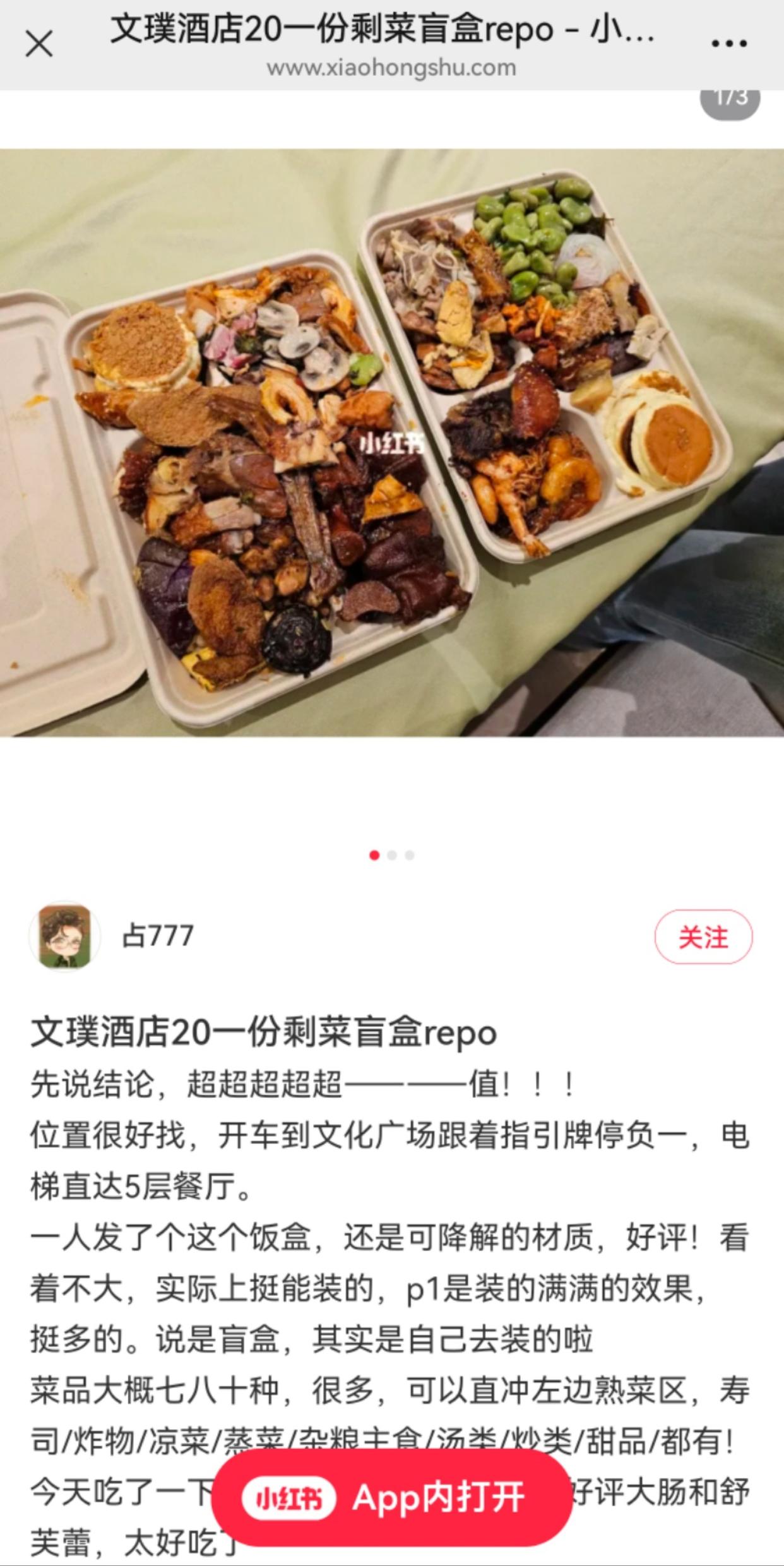 “常州人快冲,酒店自助餐剩菜盲盒仅10元。”近日,常州一豪华级酒店推出“剩菜”盲盒引关注,不少人在社交媒体发帖推荐称“好吃超值”。