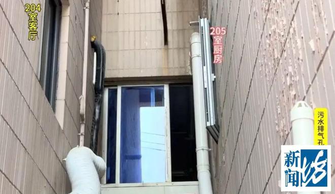 这根排污管上还有散发着臭气的排气孔,就对着204室陈女士家的客厅和隔壁205室的厨房,直线距离不足3米