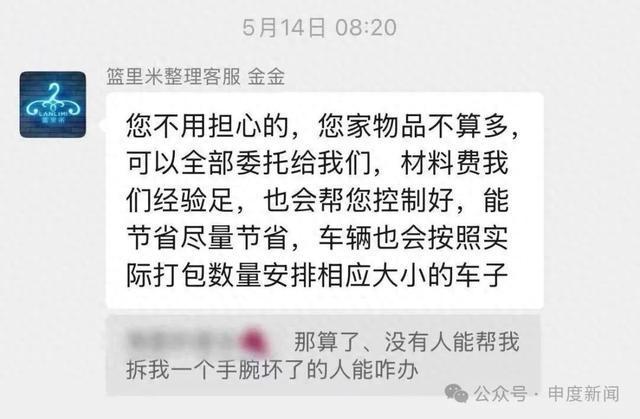 “前期沟通的时候也根本没提到发生物损怎么办,我觉得就算找家政来帮我收拾,都不会弄坏帽子,但收纳师和家政的收费简直一个天一个地。”