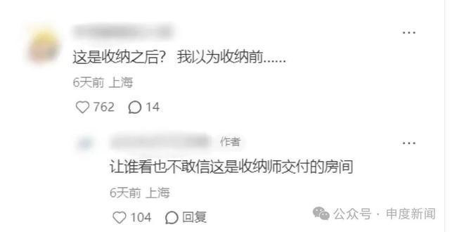 后来,王女士将这张刚收纳完的照片发布在社交平台上,引来了不少网友关注。有人留言道:“这是收纳之后?我以为收纳前……”仅这条评论,就有700多个点赞。有人直呼“不敢信”。