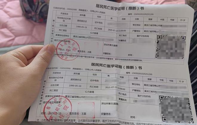 今年6月中旬以来,黑龙江等地出现持续高温天气。其妻子鹿女士表示,丈夫由此患上了热射病。7月13日上午11时,因糖尿病引起的多症状并发症,以及心脏衰竭,吴铁鑫不幸离世。
