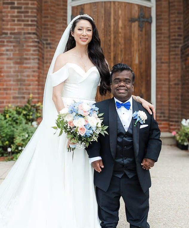 近日,加拿大一位亚裔女企业家公布婚讯,引发网友关注甚至质疑。这名美女身高5英尺4英寸(1.62米),而她的印度裔丈夫身高4英尺(1.2米)。网友们一边怀疑婚纱照是合成的,一边质疑“一个1.62米的女人,怎么会愿意嫁给一个1.2米的男人呢?”