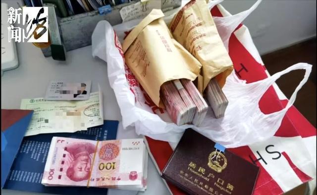发现了里面有五万两千多现金和一张大额支票,还有身份证、户口本,总共五样东西。