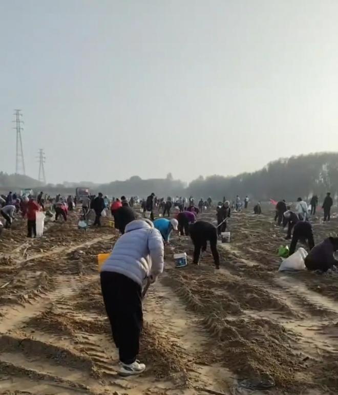 11月2日下午,另有网友发布的视频显示,薛福路旁的大片农地里,密密麻麻有数百人在地里用工具和袋子刨捡着。视频发布者回复称,这是在捡芋头,周末好去处,体验农村生活,回忆童年。