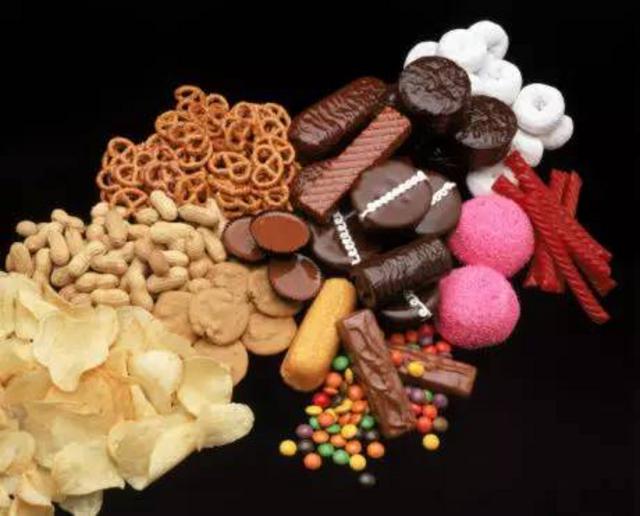 只能偶尔吃的有:糖果、巧克力、薯片、薯条、玉米片、棉花糖、烤饼、果脯、虾条、碳酸饮料等。