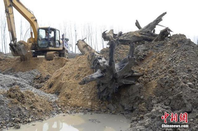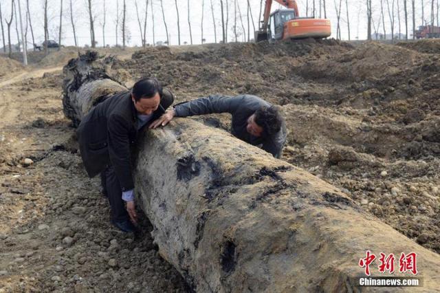 据专家介绍,这批阴沉木的树皮已经炭化,但内部的树干依然十分坚硬,其埋在地下的时间约为2000年,不过树种种类和经济价值还有待进一步权威鉴定。