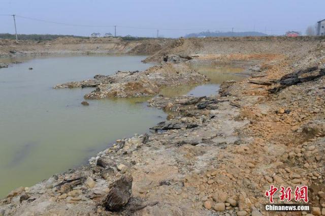 3月4日,在湖北省枝江市安福寺镇蔡家嘴村,村民高卫东一边安排挖机继续挖鱼塘,一边照看着刚刚挖出来的阴沉木。日前,高卫东在自家地里挖鱼塘时,挖出大量阴沉木,目前已挖出20余棵,其中4棵保存较好,最大的一棵长约25米,直径约1.5米。王康明摄